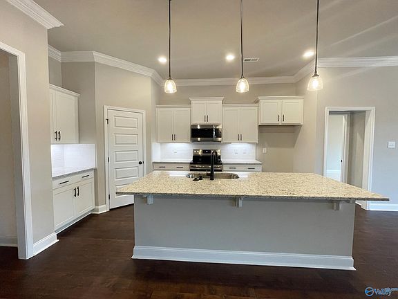 - Features: Crown Molding, Granite Counters, Kitchen Island, Pantry, Recessed Lighting, Smooth Ceiling, Wood Floor