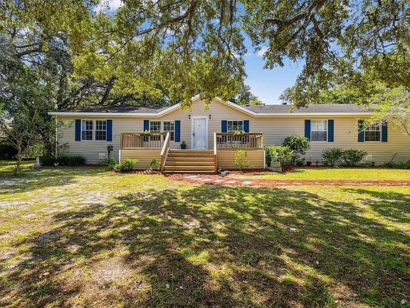 The perfect home has arrived. This UPGRADED mobile home offers 5 bedrooms, 3 bathrooms with 2052 square feet and an open-concept floor plan. This amazing home sits on 1.98 acres of flat land located in the ever popular city of Spring Hill, FL. Peace and tranquility is all yours; while you are still close to grocery, medical, highways, and restaurants. This fully fenced property is an eye opener when you arrive. As you come through the gate take note of the PRIDE OF OWNERSHIP. Manicured trees/landscaping throughout. Park in the rear of the home on a your 2 car parking pad. The home has a large wood front porch perfect for enjoying coffee and watching the wildlife. Once inside, you are greeted with a space perfect as a dining room or even a second living room. Beautiful and modern laminate flooring throughout main area. Vaulted ceilings gives the feel of even more space. Go directly into the kitchen with newer high end wood cabinetry with glaze technique added for luxury. Lazy Susan and soft close drawers. Under cabinet lighting. GRANITE throughout. Stainless steel appliances to include a large single door refrigerator (freezer is separate) and pantry. 57x24 center granite island for additional seating with electrical and even more storage. Modern light fixtures. Off of the kitchen is the laundry room/drop zone with its own separate door to the outside. Head right into the spacious living room with large windows and beautiful wood burning stone fireplace with mantle. Towards the back are 2 large sized bedrooms with a full bathroom. Off of the living room are 2 more bedrooms with a Jack and Jill bathroom style and spacious closets. The master bedroom is on its own side of the home for privacy and is very spacious with a full ensuite, garden tub, walk in shower and dual sinks. Off back in an enclosed screened in porch with 3 inch insulated ceiling for sound. There is a back yard shed as well for storage. There is water and electricity hook-up for campers/RVs. About 0.6 acres of the property can still be cleared if buyer chooses too. Private Septic and well. Separate fenced play area with play set. Re roof 2013, AC 2014, septic tank has brand new 32 gallon bladder tank, new packer and well head adapter 2022, extended drain field of about 500 sq ft added in 2015. This home is secured with anchors and tie downs. Recently power washed. Schedule your showing today!