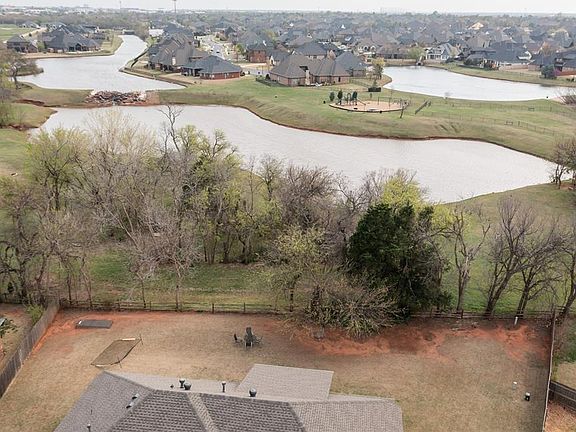 This home has it all! Beautiful wooded greenbelt lake view. Backs up to the old Traditions Golf course. Convenient location only 2 mins from Kilpatrick Turnpike, 5 mins to Lake Hefner Pkwy or Broadway Ext. Get anywhere in Edmond or OKC easily. Large yard with gorgeous views and privacy - plenty of room for a pool. Single story home with 4 bedrooms + study + formal dining/living + 2.5 bathrooms. 3 car garage with new insulated garage doors, a storm shelter and lots of attic storage. New wood-look tile floors in 2021, New fireplace tile in 2021, new HVAC 2023 including ductwork and an AutoPure purification system upgrade. New roof + guttering 2023. Huge primary bedroom with hardwoor floors, door to the back patio and room for a sitting area. Large primary bath and closet with a separate soaking tub and shower plus built-ins. Beautiful woodwork with crown moulding throughout. 10ft ceilings and large windows make the home bright and cheery. Spacious kitchen with tons of storage, gas stove and new dishwasher. So many upgrades and updates already done for you! Walk to the community pool and clubhouse. Award-winning Edmond schools - Charles Haskell, Summit and Santa Fe highschool. OG&E, OKC utilities and Edmond post office.