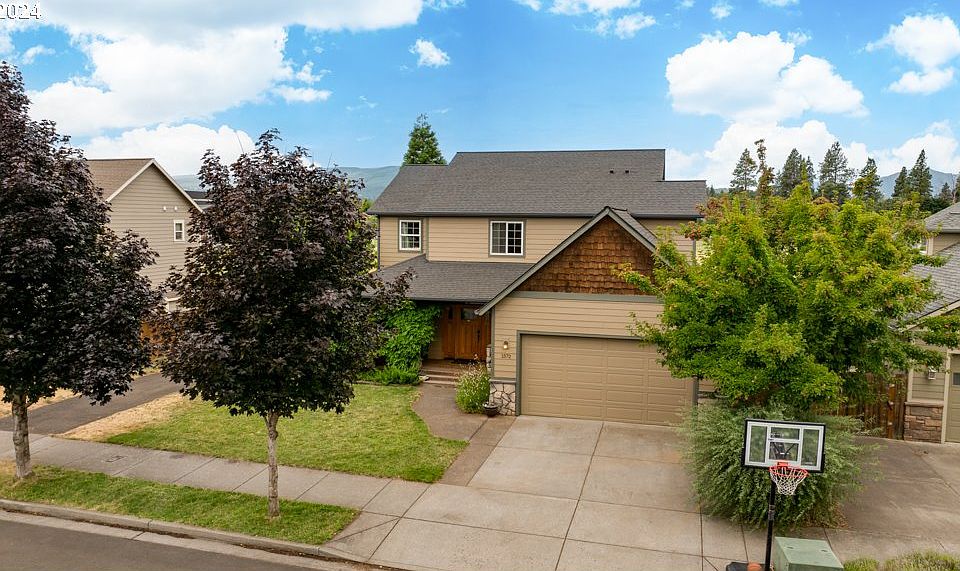 Welcome to your dream home! This beautifully appointed 4-bedroom plus den, 2.5-bathroom residence offers a perfect blend of modern conveniences and natural beauty, nestled in the heart of Hood River. Step inside to discover abundant natural light and a welcoming atmosphere throughout.The spacious living areas feature gorgeous hardwood floors that add warmth and elegance, complementing the open floor plan ideal for both everyday living and entertaining. Each generously sized bedroom provides ample space for relaxation, complete with closets offering abundant storage for all your needs.The kitchen showcases quartz countertops, beautiful cabinetry, and stainless steel appliances, making meal preparation a delight. Enjoy eco-friendly living with solar panels and a central vacuum system that enhances everyday convenience. Above the garage, a handy attic space provides additional storage for seasonal items or family treasures.Located just minutes from downtown Hood River, this home offers easy access to charming shops, delightful dining options, and essential amenities. Experience the exceptional lifestyle this home offers. Contact your agent today to schedule a viewing and discover your new home in Hood River!