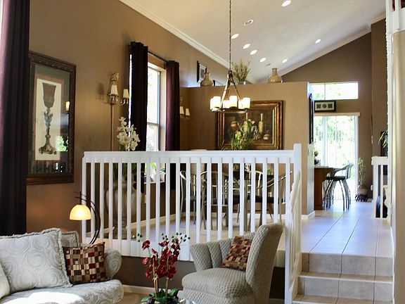 This beautiful meticulously maintained 3/3 home plus a den (can be converted back into a fourth bedroom) it's located in a cul-da-sac with a beautiful private view to the preserve and fruit trees. The large back yard is completely fenced in with plenty of room for a pool. Home features elevated deck right off the kitchen. One bedroom and full bathroom downstairs. Accordion shutters on second floor, new A/C, new washer and dryer, tiled multilevel first floor and crown molding throughout. Upgraded kitchen with cherry wood cabinets and granite countertops, backsplash and large island. Excellent location! Very active resort style community with numerous activities available, low fees and no mandatory membership.