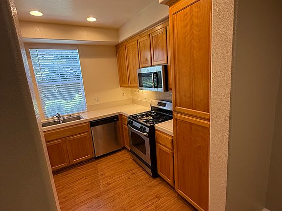 This is a condo unit. Brand new carpet and brand new refrigerator! Central location to transportation & groceries. Very convenient! San Leandro BART is 1.8 miles away. Bus stop is roughly 0.3 -.0.6 miles (Line 1T and 45). 5 mins. drive to Downtown San Leandro. There is a new Starbucks in construction, literally 5 mins. walking distance. Food Max is a block away. Or 5 mins. drive to Safeway in SL downtown. One year lease with $5,000 deposit is required. Tenant is responsible for PGE and Waste-Management (garbage). Water is covered. Two car garage. Parking in driveway is not allowed per HOA. No smoking. No pets. Owner pays for water, Tenants pay for PGE and Recycle. Minimum One year lease.