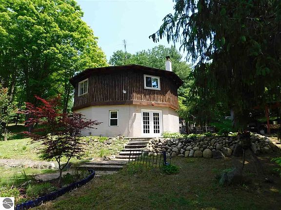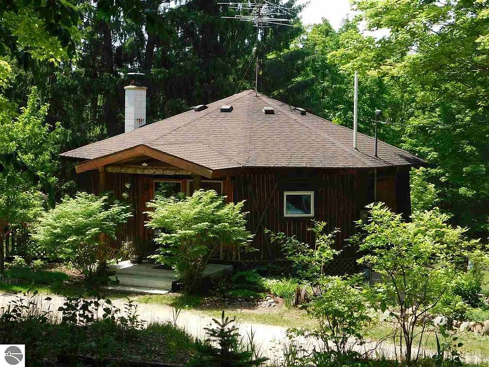 CUTE AS A BUTTON!!! Unique and handcrafted ten sided home with all the amenities! Its the perfect home for anyone wanting a beautifully wooded setting to nestle into! Split level home, every inch of space is very well planned and well maintained, definitely has a personality all its own! 2 BR, family room that could be additional sleeping, walkout basement to lovely patio. So much to offer, geothermal heat, beautiful landscaping, nice patios, covered pavilion for family cookouts, and a old fashion red barn if you are looking to have animals! So much potential in this unique home! Also includes a small guest cottage, insulated & electric and additional storage cabin, perfect for a workshop! All this on 40 acres to roam! This one is a little gem and definitely a pleasure to see!