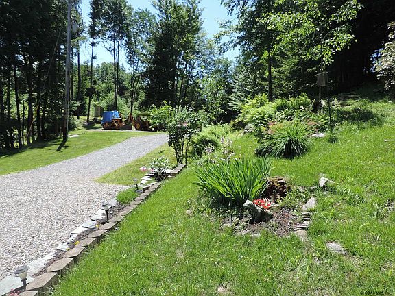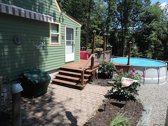 Located at the New York-Vermont border, this 19.09 acres has a storybook setting. A 400+/- well constructed, crushed stone driveway brings you to an adorable cabin with underground power. The kitchen-dining and living area combine to make one large charming room. The cabin is heated with propane, has Hardy Board siding, wrap around deck, above ground pool, awning, a portable garage, and a driven point for water supply. Stone walls, slate walkways and flower gardens all add to the charm. If privacy is what you are looking for this, then this getaway would be perfect.