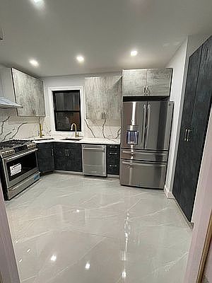 Gut renovated Three bedrooms duplex , two full bathroom , front porch , stainless appliances, dishwasher, w/d hook ups . Guarantors welcome