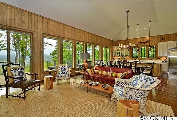 -2495 Total Square footage in 3 separated areas: main house, guest suite, basement-unheated area between each. Incredible Custom Mountain Top Retreat on 16 Ac. with inspiring views in gated community. Main House with heart pine floors, 13.5 ft. ceilings, pickled pine walls, gourmet kitchen w/ quartzite tops. Master suite with custom bath and w/in closet, huge deck, hot tub, path to creek, bunk room and den in basement, 2 BR guest suite with 1 BA.