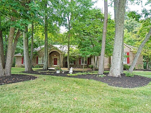 This former home show RANCH is a beauty! Amazing floorplan! Gorgeous double wooded lot on a cul-de-sac. Large deck across the back of the house. Main floor living includes a welcoming entry with warm hrdwd flrs, formal LR, large executive study with built-in bookcases and French doors, 4 bedrooms. Open dining rm has walkout to deck and is perfect for large gatherings. The bright & light family rm has a high ceiling, built-ins, fireplace and walkout out to deck. The perfectly positioned kitchen has an island, double oven, and plenty of cabinets. Enjoy casual dining in the kitchen or walk right outside to the deck and enjoy the view. Primary BR has a large ensuite and walkout. The unbelievable lower level has a wet bar, dance floor, possible game room, half bath and lots of storage. Walkout to a patio with benches. Truly a home for entertaining! The versatile floor plan is cozy yet large enough for a possible multigenerational home. 3 Car gar