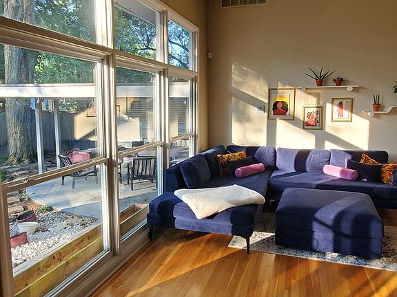 Beautiful well maintained mid century modern home with nice sized bedrooms, open concept kitchen and living room, large front and back yard with 6ft privacy fence, large windows that bring in tons of natural lighting, hardwood floors, freshly painted and tons of character! 1 car garage and storage shed. Nestled in a very quite neighborhood. Split level with no basement, but does have a crawl space.