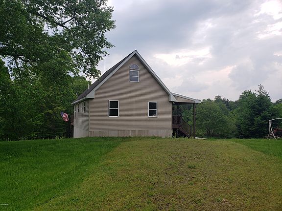 Look no further!!! Whether you are looking for a cabin or an all year home. This 3 Bedroom 1.5 bath home built in 2005 is situated on 4.46+/- acres, has a spectacular view from the wrap around porch to your own pond. Open area concept with a cozy wood burning stove with a wall built with stone from the land. Not far from State Game Lands. Start your new chapter in your life with a one of a kind home in Shunk. $189,000.
