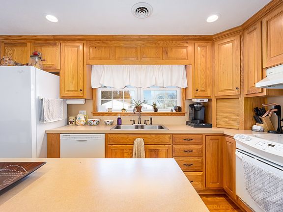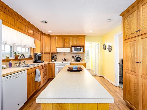 This cozy home offers easy living and great sunset views on over one acre! The covered front porch welcomes you inside to the open living area with gorgeous hardwood floors and large kitchen with ample storage and prep island. Primary bedroom and full bathroom are on the main level along with laundry. Upstairs you will find two additional bedrooms. There is a fenced area perfect for a play area or for your animal friends. Keep your vehicles and outdoor gear out of the elements with the detached garage/workshop. Country living but yet minutes to Timberville & Broadway. Property has two bedroom septic.