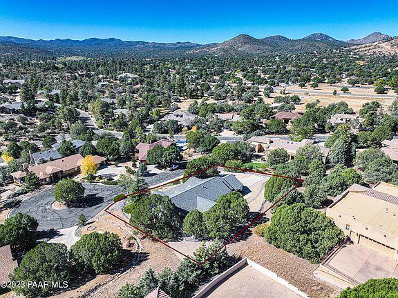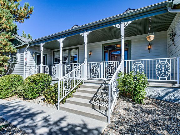 Nestled on a serene cul-de-sac within the prestigious Southview Trails, a Victorian haven boasting timeless elegance and modern updates. A new roof and exterior paint showcase the meticulous care given to this home. The front covered porch invites you to savor panoramic views, while the fenced backyard, accessible from the covered patio, offers a private retreat beneath Prescott's star-studded sky.Inside, an inviting spacious great room with a gas fireplace, adorned with wood and large ceramic tile flooring. Elegant crown molding details grace each room, enhancing the Victorian aesthetic. The private eat-in kitchen is a chef's delight, and the dining area sets the stage for delightful meals. A second large bedroom is versatile as a second master suite.