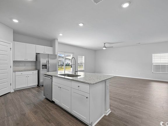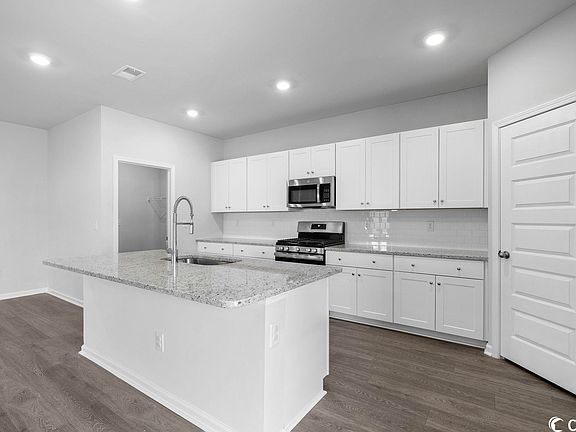 Looking for room to grow? This stunning home is just a few months old and offers loads of living space with 5 bedrooms, 2 1/2 baths, and 2nd upstairs family room for relaxation and entertainment! The first floor impresses with its 9-foot ceilings, upgraded Shaw flooring, LED recessed lighting, the huge open main family room/dining room/kitchen which creates an open and inviting atmosphere. The large kitchen features loads of cabinets, granite countertops, tiled backsplash, stainless appliances including gas stove & large capacity refrigerator, a convenient walk-in pantry and more! The owner's suite boasts a luxurious 5 foot walk-in shower with glass doors, a double-bowled vanity, and a spacious walk-in closet. Upgraded ceiling fans throughout the home provide comfort and energy efficiency. This smart home is equipped with a Ring doorbell, Ring Garage Opener, Honeywell smart thermostat, Flo by Moen water shut off, and more. The tankless water heater ensures endless hot water supply. Relax on your covered front or back porch, or enjoy the outstanding community amenities which include the community garden, community pool, or come play at the playground! With easy access to Highway 31 you are central to everything that Myrtle Beach has to offer! Plus the Intracoastal Waterway public boat access is right down the street! This home offers the perfect blend of convenience and leisure- plus the builders warranty transfers to new buyer. Don't miss the opportunity to make this your dream home!