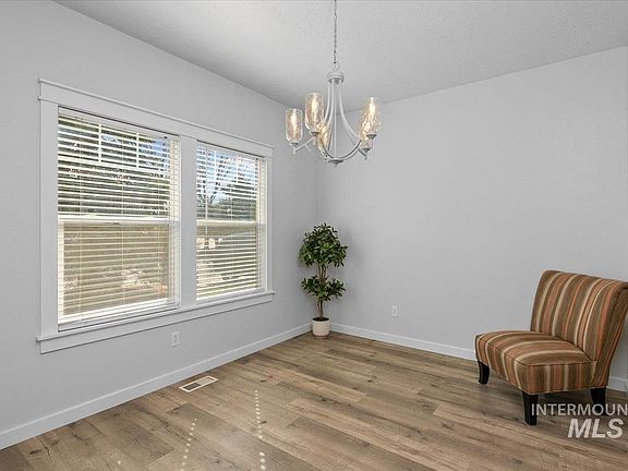 Perfect Meridian location! This freshly painted single level home in Cobblefield Crossing is sensational! 3bed/2 bath charmer with brand new LVP flooring and new carpet. The beautiful open kitchen has granite countertops, tile backsplash, & SS appliances! Grand dining room just off the kitchen is perfect for entertaining. Owner's retreat has giant walk-in closet & dual vanities! XL garage! Walking distance to shopping and restaurants. Community pool! Home is vacant and shows well! Don't miss this opportunity!