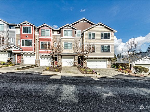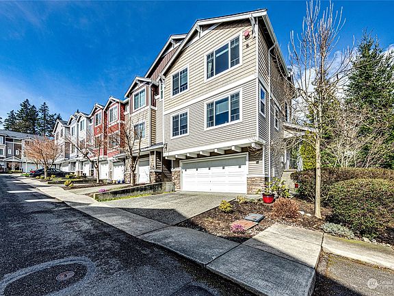 Great size 3 bed 2.5 bath, exceptionally well maintained corner unit home in the heart of Lynnwood. 2 car garage has combo and remote open, plus 2 add. parking spaces in front. Cozy covered front porch leads up to open and inviting main level with tall ceilings, stunning finishes and includes a large island kitchen, living room, dining room, fam room and half bath. Main level also leads outside to a wonderful size private balcony for cooking or relaxing. Don't miss the mountain views as you head up to your Primary bedroom with en-suite bath and WIC, plus 2 additional bedrooms, full hall bath and utility room. Downstairs you get a huge finished basement with new floors. Fantastic location, easy access to so much, pre-inspected, strong HOA.