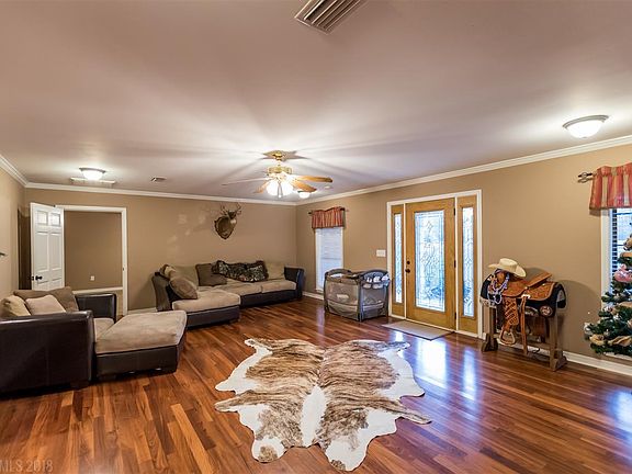 Wow! Bring your horses because this home with 4 acres and 2 barns has all you need! Granite countertops, custom cabinets, smooth ceilings, hardwood and tile (no carpet), walk in closets everywhere, oversized laundry room, HVAC heat pump with nest thermostat that works with wifi, beautiful fireplace in master bedroom, full walk out attic, 2 hot water heaters, 3 septic tanks, double carport, open barn with loft and enough space for 2-3 more vehicles, 80x80 horse barn with 6 stalls and a 10x20 tac room, covered area for horse trailer, wired with high bay lighting and 3 phase power, enclosed 40x60 area, 16x16 double doors on both sides, concrete floors, wood burning stove and 120 inch projector with satellite and surround sound to convey. This property is a MUST SEE!