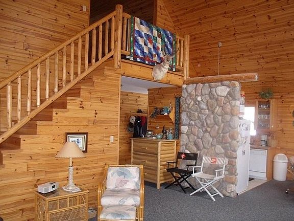 Private, spectacular setting on the Manistee River with a slight gradual slope to the waters edge with 410 ft frontage. Vinyl sided chalet provides minimal exterior maintenance over the life of the home. Features include walk out basement, wrap around deck, 3BR,1BA,2nd bath plumbed and stubbed in the wall for future 2nd lvl bathroom. Knotty pine interior screams WELCOME TO THE RIVER! Must be seen to be appreciate this move in ready home. Basement has double doors for easy access and storage of Canoes, Kayaks, or other recreational equipment.