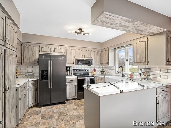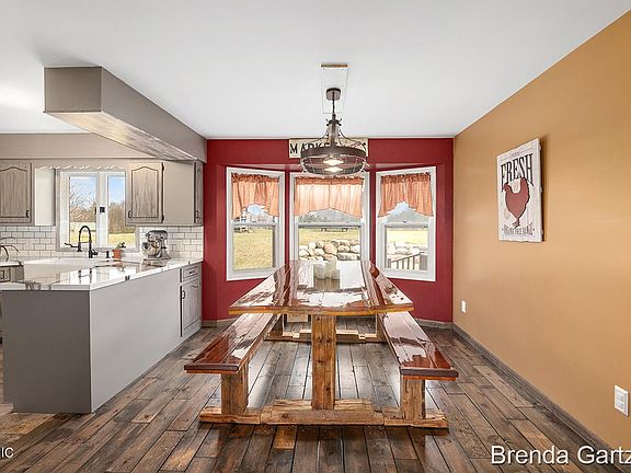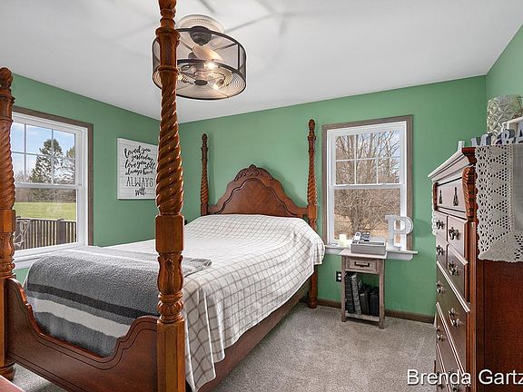 Enjoy it all! 3 bedroom 2 bath w/o ranch 3 plus car garage and workshop, pole barn all on 4 acres with Tamarack Creek flowing through it.The main floor of the home offers a large LR with a wood FP, Wood laminate flooring, 2 bedrooms, bath, kitchen with all new appliances, dining and a deck to enjoy watching the wildlife. The LL offers a large family room with a FP, master suite, Hot tub off the master, 3 season room off the FR and that area has a door leading to the garage. The garage is 3 stall 42 across and 25 deep for an extra 34x27 shop for wood or mechanic shop. There is also a dog run leading into that area from the outside lean to. Survey type flags are approx and across the road into the woods. 1/4 mile from Tri county bus pick up. Borders Lakeview/Tri c