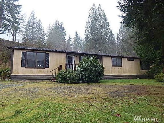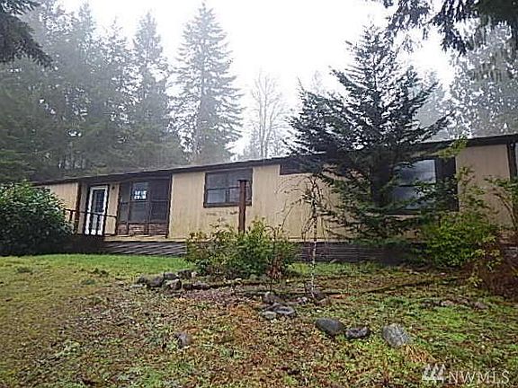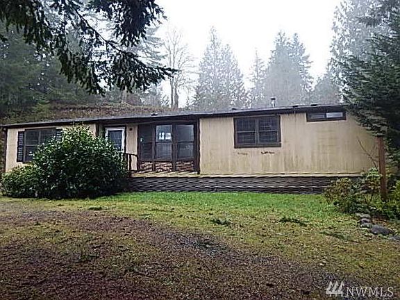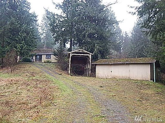 Looking for space? Nearly two acres with over 1700 sqft of living space. Three bedrooms, two bath, dining with built in hutch. Kitchen with built in buffet and opens to the family room. Also includes living room and vaulted ceilings. Utility room with basin. Master bedroom with own bathroom to include a soaking tub and separate shower. RV covered parking and garage/out building. Located above South Prairie. HUD Home sold "AS IS" Buyer to verify.