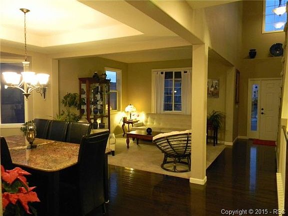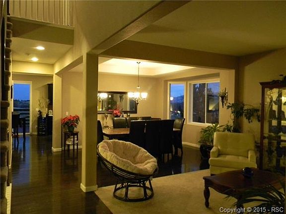 Stunning two story with VIEWS of pikes peak & park like landscaping in Jackson Creek!This meticulously well cared home has lots of extras.Large,eat-in kitchen,tons of cabinet and counter space plus a pantry.Master is on upper level with 5pc bathroom.Family room on main level has a nice fireplace and walks out to a huge 20*60 deck.Floor plan is very open but yet it offers a HUGE formal living room on main floor.Three more bedrooms on the upper level with laundry room.Basement offers 2nd family/rec room with another bedroom.