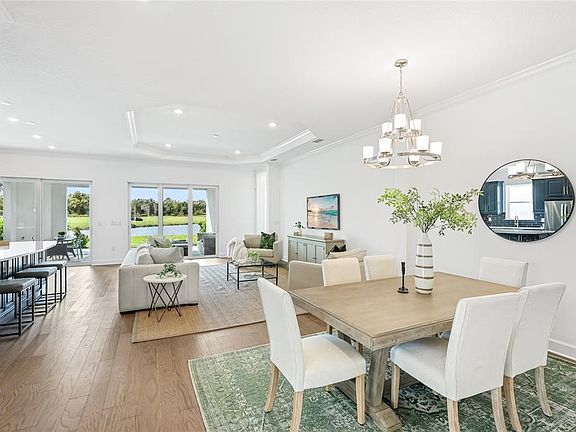 GOLF DEEDED LOT with one of the best views in the neighborhood! Welcome to your dream home in the sought-after Esplanade at Azario! This never lived in Lazio floorplan offers the perfect blend of luxury, comfort, and functionality—designed for modern living and entertaining. Located on a golf-deeded lot, this home boasts breathtaking panoramic views of both the water and golf course, providing a serene and picturesque backdrop every day. Step inside to discover a thoughtfully designed layout featuring 3 spacious bedrooms, 3 full bathrooms, a den, and an open-concept living space. The gourmet kitchen is a showstopper, featuring elegant navy cabinetry, quartz countertops, a large center island, and top-of-the-line stainless steel appliances—ideal for hosting and daily life alike. The expansive great room opens seamlessly to the covered lanai, where you can relax and soak in the beauty of your surroundings. The owner’s suite is a true retreat with a spa-like bathroom, dual vanities, and a generous walk-in closet. Enjoy all the incredible Esplanade lifestyle amenities, including the championship golf course, resort-style pool, fitness center, tennis and pickleball courts, full-service spa, Bahama Bar, culinary center and more. Don’t miss your opportunity to own this exceptional home with unmatched views and upscale finishes in one of Lakewood Ranch’s premier communities!