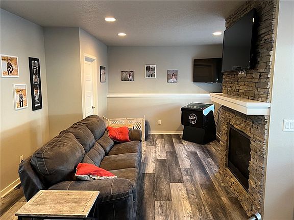Fantastic Clive home within Waukee School District! Within minutes of the Clive Greenbelt and many restaurants. The main level features a beautiful kitchen with stainless steel appliances, a large island an open floor plan with recessed lighting. The main level also features an oversized bedroom with a walk-in closet, shoe storage closet, and full bathroom. There are two additional bedrooms, a second living room with a fireplace, a full bathroom, and a laundry room on the lower level with plenty of storage. Outside has an electric fenced yard.