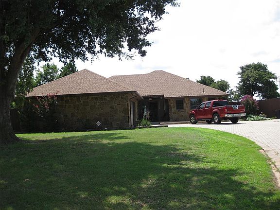 Beautiful 1 acre Property that feels like much more due to the land behind this property. A wonderful Kitchen you just have to see it!!, Living area is spacious with built-in, forced air wood burning Stone fireplace, vaulted ceilings, Master has vaulted ceilings access to patio & ceiling fan, Master bath has double vanity, skylight, shower & generous walk-in closet. Bedrooms are nice size also. Old fashioned cloths line, Pecan tree, Apple tree, 2 outbuildings, and a covered parking area off the backyard access area Seller will provide a allowance of $5K Seller will not make any repairs! Selling "AS IS" This home is on septic tank & there are 3 wells on this property & it has natural gas. Water softener leased 30.43 monthly, Security System ADT 29.81 Monthly