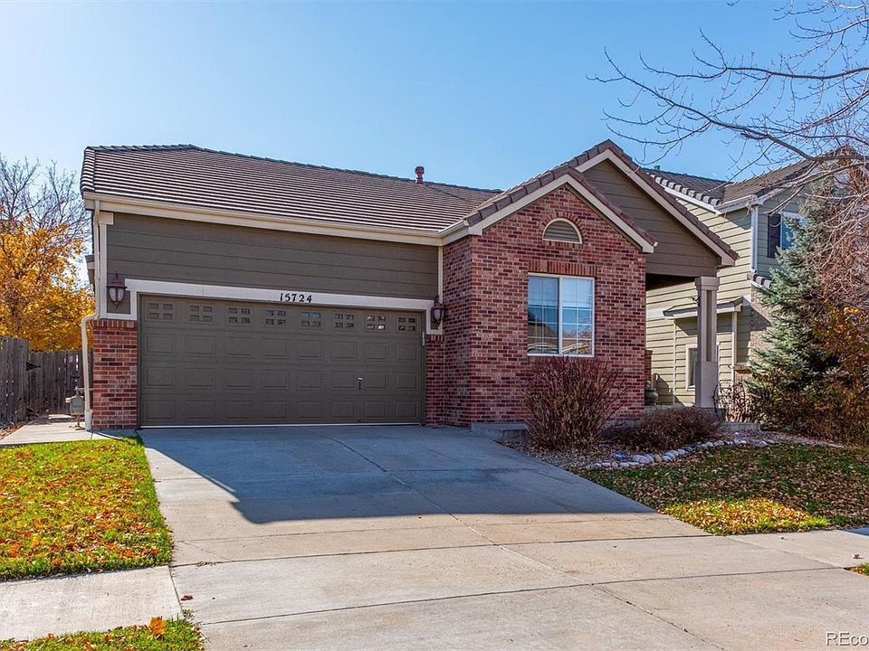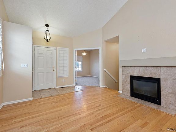 Welcome to this Fronterra Village ranch style home with beautiful brick accents, only 1 block to Badger Park. The home features main level living with a rare, full finished basement. Upon entering you are greeted into a spacious living room with vaulted ceilings, hardwood floors, a gas fireplace and lots of natural light. An office with French doors overlooks the front of the house making a great work-from-home space. A big & bright kitchen with dining area features tall cabinets and a sliding glass door accessing a large patio, perfect for indoor/outdoor Colorado living. The main floor master bedroom features en-suite bath and large walk-in closet. The 2nd bedroom, full bath, and laundry with garage access round out the main floor. The full basement offers versatility and is finished as a studio style bedroom with living area and 3/4 bath, or a spacious rec/family room. New carpet * All appliances included * Plantation shutters * 2 car garage * Tile Roof * Paved walk way from back patio around to front of house