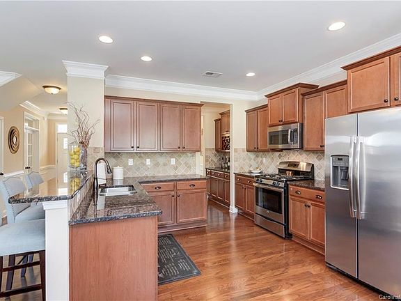 This Buxton model checks all the boxes! With 4 bedrooms plus an office it gives you plenty of space to spread out. Wood floors throughout the main make the rooms flow nicely. Open living and kitchen ensures your party will be a hit. The chef style kitchen features tumbled stone tile backsplash, granite counter-tops, stainless steel appliances and bar area that opens up to the great room. Pass through butlers pantry between the kitchen and formal dining offer a great place for a coffee station, wet bar or extra storage. Conveniently located off the kitchen is the stone paver patio with built in fire pit. Upstairs you will find large master suite with neutral decor, custom closet and elegant master bath. The bath has large garden tub, separate shower and tile flooring. Very quick walk to the neighborhood pool! Conveniently located to I-77, shopping, and nature trails.