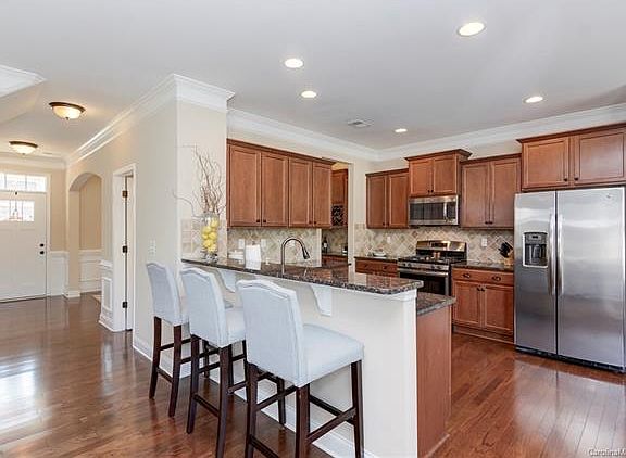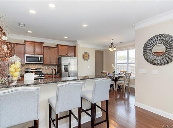 This Buxton model checks all the boxes! With 4 bedrooms plus an office it gives you plenty of space to spread out. Wood floors throughout the main make the rooms flow nicely. Open living and kitchen ensures your party will be a hit. The chef style kitchen features tumbled stone tile backsplash, granite counter-tops, stainless steel appliances and bar area that opens up to the great room. Pass through butlers pantry between the kitchen and formal dining offer a great place for a coffee station, wet bar or extra storage. Conveniently located off the kitchen is the stone paver patio with built in fire pit. Upstairs you will find large master suite with neutral decor, custom closet and elegant master bath. The bath has large garden tub, separate shower and tile flooring. Very quick walk to the neighborhood pool! Conveniently located to I-77, shopping, and nature trails.