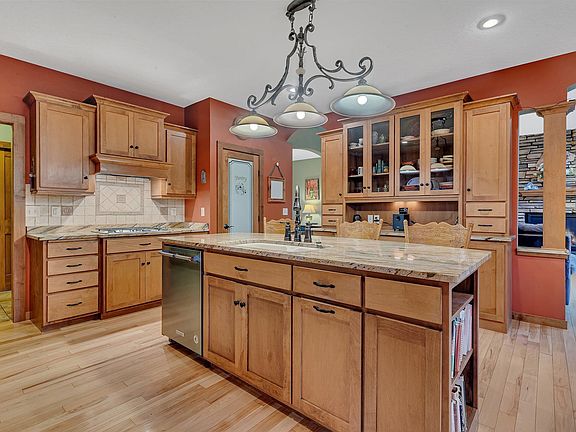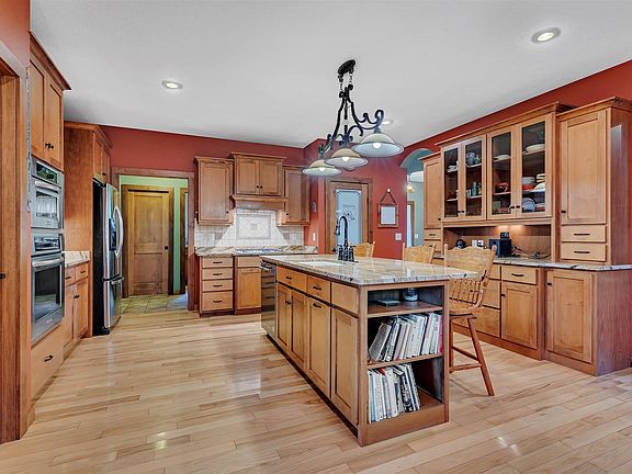 1.90 Acres on the Mississippi River, 226 ft of river shore, mature trees & beautiful sunset await! Custom built Walkout Rambler by Berscheid Builders! Lg kitchen offers maple cabinets, built-in hutch, walk-in pantry, pullout drawers, ctr island, tile backsplash, granite counters. Good size dining room w/door leads to screened in porch. Greatroom offers vaulted ceiling, custom built-ins, gas fireplace and flr 2 ceiling stone. Lg en suite w/trayed ceilings, soaker tub, walk-in tile shower, double vanity, granite counters, beautiful CT floors, WIC. Main floor laundry room w/sink & CT floors, half BA off of garage, mud room & large foyer. Open floor plan, hickory floors, arched hallways, pillars w/granite tops, pocket doors, office w/built-ins. LL is unfinished and stairs to the garage. Steel siding, gutters, Roof 2023, deck, patio, fenced in garden,CA w/heat pump, paver patio, 3 car att garage w/11 ft ceiling, 24x28 det garage w/in floor heat, finished, poxy floors and outlet for welding.