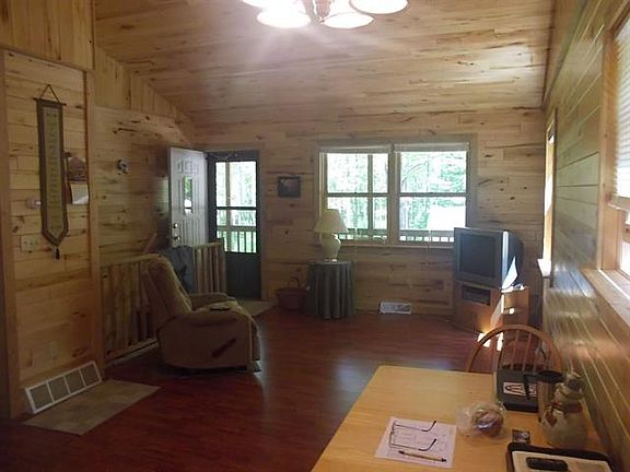 This Northern Cabin is a beautifully finished with t&g Basswood and drywall interior for both warmth and beauty. Hardwood floors throughout. Oak kitchen cabinets. closets in hallway. Built on a full basement, with walkout, this Cabin could easily be used year round. Shed houses lawn mowers and tools. Acres are mostly wooded. Easy distance from Saxon Harbor and other beautiful features in the area. Call for your viewing today.