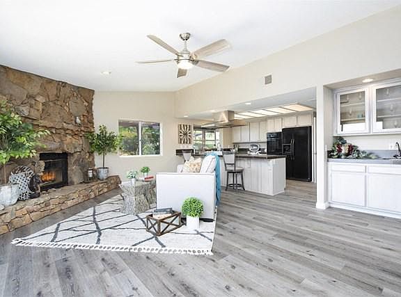 Panoramic and garden views from almost every room in West End Ramona on appx. 8 acres. Walking distance to Dos Picos County Park for fishing, hiking and playground and enjoy the Barona Fireworks in your own front yard. Spectacularly landscaped and room for horses. 4 bedrooms, plus an office/extra room with it's own separate entry. Luxurious master suite with it's own fireplace and master bath with soaking tub and separate shower. Formal living and spacious family room with stone and granite rock fireplace and views. Updated, laminate flooring. Enjoy the Barona Fireworks in your front yard. Paid for solar and solar water heater to save on utilities.