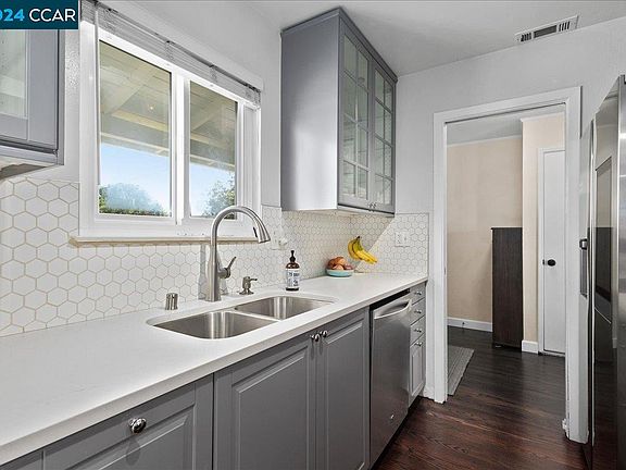Nestled in the charming San Lorenzo Village, this stunning home offers the perfect blend of comfort and convenience. With 3 bedrooms and 2 bathrooms spread over 1314 sq/ft, this property boasts an open floor plan that invites natural light and warmth. The living room features a cozy wood-burning fireplace, perfect for those chilly evenings. The kitchen has been updated with sleek quartz countertops and stainless steel appliances, making it a chef's delight. Gleaming hardwood floors run throughout the house, adding a touch of elegance to every room. The dual pane windows not only enhance the aesthetics but also ensure energy efficiency. The fresh exterior paint and the newer electrical and HVAC systems are a testament to the meticulous upkeep of this property. The backyard is an oasis of calm, ideal for unwinding or hosting memorable gatherings with loved ones. Situated close to schools, the post office, banks, and community parks, this home offers the best of suburban living in a fabulous neighborhood. This property is perfect for first-time home buyers and won't stay on the market for long!