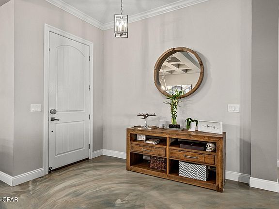 This home welcomes you with a custom 16 foot Paris style gate with remote and 400 foot paved driveway. Inside you will find beautiful trayed and coffered ceilings with custom cabinetry, Brazilian Azul Nebula granite and unique epoxy floors throughout this energy efficient home.