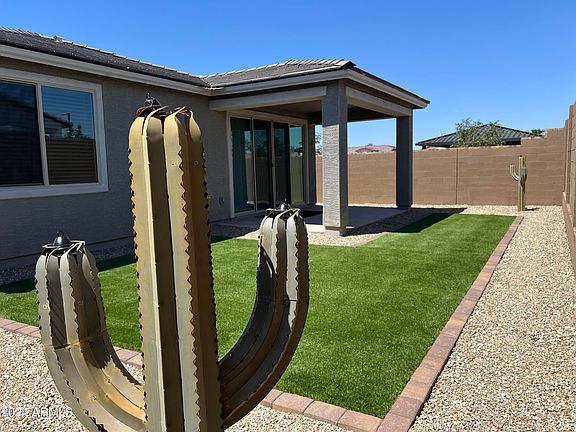 CHOICE PROPERTY...DARE TO COMPARE WITH NEW CONSTRUCTION !!! Completed less than year ago in Oct.2023 on Premium Lot(next to the park) ,Open/Split 4 beds,3 baths plus Teen Room floor plan, 9 ft Ceilings,Tile Floors except Bedrooms, Tall White Shaker cabinets, Quartz Countertops, Center Island w/Pendant Lights, SS Appliances incl New Refrigerator,Washer and Dryer, Primary Suite w/ two walk in closets Ceiling Fans/Lights in all rooms, Custom Paint, Complete Window treatments, 12ft Sliding Patio Door with light filtering Curtains, Garage service door,Landscaped Private backyard w/artificial Grass and Saguaro torch cactuses, Quiet/Central location, Goodyear Recreation Campus,Goodyear Ballpark,Shops and Restaurants ''around the corner'' DARE TO COMPARE...AN INVESTMENT IN YOUR FUTURE!!!