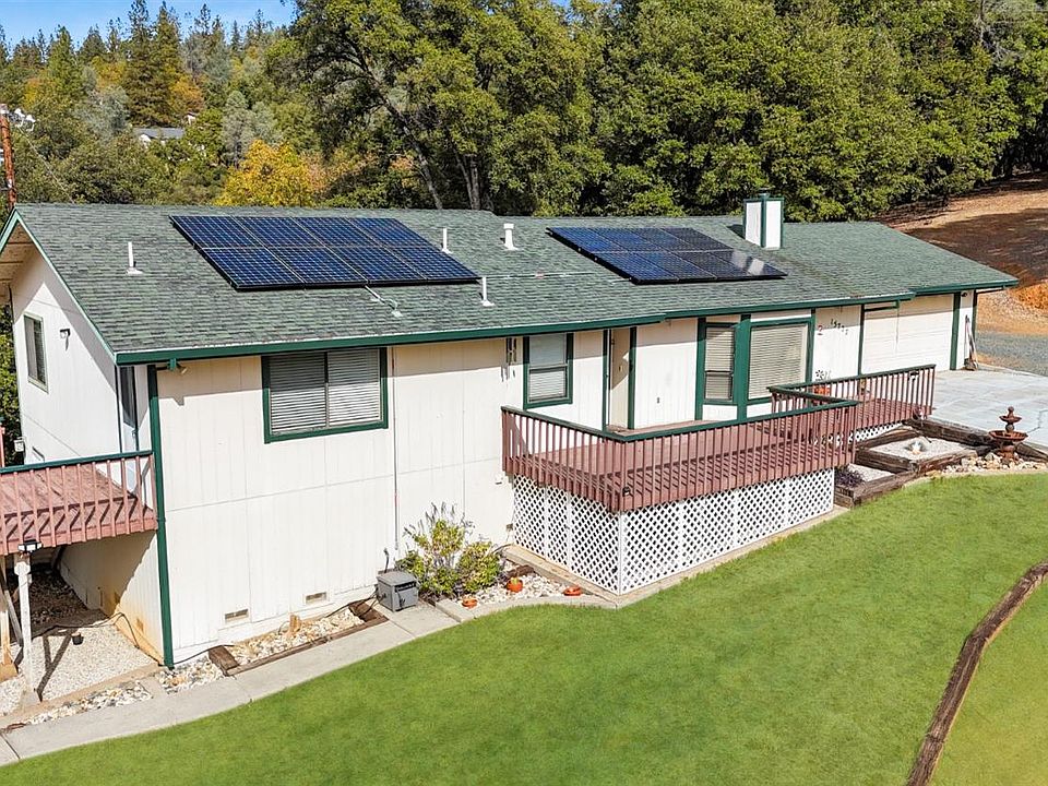 Looking for a neighborhood feel but complete privacy on 3 acres of land with local views? Look no further and come see this 2 bedroom 2 bath single story home with a guest area or home office with separate entrance below. Open floor plan greets you with a cozy wood stove welcoming the Fall weather. Vaulted ceilings with so much natural light pouring into the home. Entertain on the large back deck or enjoy a sunset view on the private deck off the primary bedroom. Room for lots of toys , gardens, entertainment and more. Just down the street from the elementary school and a short drive into Grass Valley.