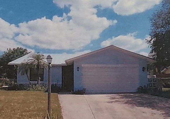 Take a look at the value for this uniquely designed, 2BR/2BA cement block/stucco house with 2car garage. Open and airy floor plan with vaulted ceilings and a fireplace in the living room. The home has the same tile throughout, fully screened lanai and a large master bedroom with walk-in closet. The eat-in kitchen was remodeled in 2016 and features two large storage pantries. Lots of new features, including a new fence installed in 2017, new metal roof overlay in 2018 and new GFIs with built-in nightlights in the kitchen, bath and garage. The home was completely resurfaced with stucco coating and painted in 2019. Backyard is completely maintenance free and includes a fire pit area, sitting areas, beautifully landscaped plants with orange and lemon/lime trees. Quiet area, centrally located community of Riverdale Shores! Within walking distance to Riverdale High School, tennis courts, Riverdale Library, 2 grocery stores, fast foods, shopping and more with close LeeTran stop to go anywhere else! Please text 903-449-0883 or email to schedule a tour or with any questions. No Realtors.