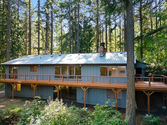 Come see this Mid-Century Modern Marvel on over 9 acres with 3 tax lots! This property has a lot of potential for the right Buyer. Home has a daylight basement. Upper level has an over sized drive through 2 car carport and lower level has a 1 car garage. Circular drive/multiple driveways (paved near home). This could be a good multi-generational home for sure. Great wooded setting only minutes to Portland or Hillsboro. Property features 24x48 pole building with an additional lean-to, 12x21 workshop/storage shed, fruit trees, grapes, gardening area, room for animals, small pond, & marketable timber. View potential with tree removal. With the multiple lots there is potential for an additional building site (Buyers to do their own due diligence but lot line adjustment would be needed as home sits on 2 lots currently).Eastern most 100' is restricted from tree cutting or any building placement. This area is protected as a privacy buffer from neighbor. Shared Well.