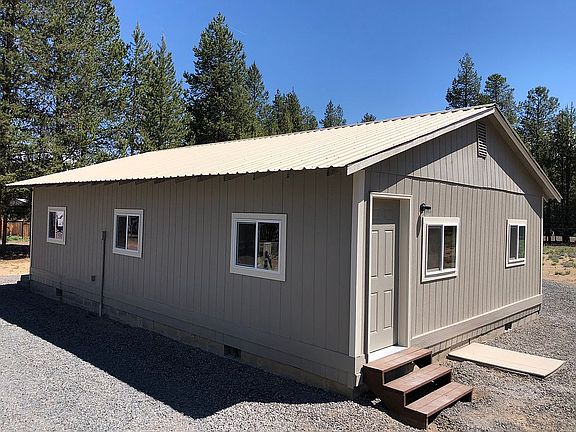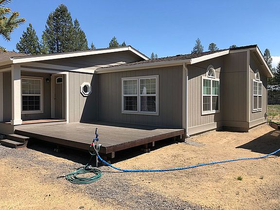 Five blocks away from the Deschutes River and La Pine State Park, one block away from the National Forest. hike, bike, ski, snowmobile, ATV, Fish, Hunt, Prospect, 30 lakes within 1 hour. It's all cool and welcome here. Complete remodel within the last 4 years including roof, interior/exterior paint, flooring, plumbing, light fixtures, cabinets, trim, tile, countertops and stainless appliances. Great layout. Huge master suite with walk in closet, spa worthy soaking tub in master bath with tile, standup shower and a separate vanity between the bath and walk-in. Large vaulted laundry/mud room next to the full guest bath, formal dining room, dining area in kitchen with built in desk. living room, entertainment/family room, EXTRA Bedroom? Decks in front and back. Additional 864 square foot building with new windows and doors wired with 110 and 220 for shop, storage or bunkhouse? New sheetrock and divided into 3 rooms with keyed entry. All exterior locks are new numeric code entry or key for backup. Complete finished attic in shop with ceiling access. Two additional outbuildings for your toys. Slab already laid for what was a greenhouse but could very easily be a double car garage. Very private corner lot over an acre, 3/4 of the property is fenced. There are 3 RV Hookups, two full, one electric only. Sewer pumped and certified, water tested and complete, triple wide manufactured with permanent foundation with tie-downs and an engineers certification complete. This home is financed 100% with VA right now. All inspections or certifications will be welcome, at BUYER's cost. By appointment only, OR JUST DRIVE BY, be sure and honk. Do not ask to see home without an approval letter from a lender for the purchase amount and that is SPECIFIC to a MANUFACTURED HOME. Buyer's realtors are welcome here, $. Thanks for looking!
