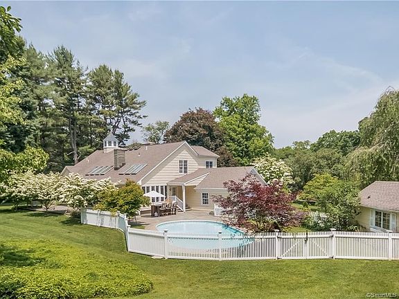 Great opportunity for a great price! Beautiful home with 5 Br's 3/2 baths and over 5000 sf of living space. 2 sun-rooms lined with windows and natural light, vaulted ceilings, skylights, Palladian windows in the master bed and master sitting room, 4 fireplaces, second master suite on main floor and hardwood floors. There is also a large family room in the basement with new floors, fireplace, and lots of storage. Home has open floor plan that is great for family living and entertaining. Huge porch on the front of the house looks out on the mature landscaped property with stone walls, flowers, and blossoming trees. In-ground pool with patio, outdoor bar and grill, second garage, shed/playhouse and large driveway. Located in desirable lower Greenfield Hill close to Greenfield Hill Market, downtown Fairfield and train station.