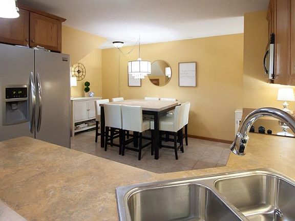 Magnificent views and maintenance free living make this home your perfect retreat. Set on the back of the Cloquet Country Club, this townhome features luxury vaulted ceilings, a large recreation room, and an open concept kitchen/living area. The luminous sun exposure, beautiful block patio, and ample parking set this unit above the rest. Unit has been updated with tile flooring in the kitchen and wood laminate in the living area. Marble table and chairs in kitchen included in sale.