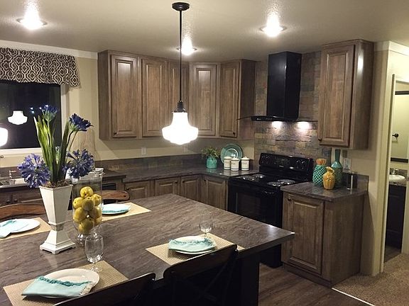 This gorgeous new permanent manufactured home has 1493 sq. ft. and enjoys 4 bedrooms and 2 baths with a large open kitchen/living room combo. The Deschutes floor plan boasts a separate laundry room and spacious layout with a kitchen island. The Master features double vanities, oversized walk-in shower and well-appointed walk-in closet. Front landscaping is included. This is one of four floor plans currently available at Cedar Estates.