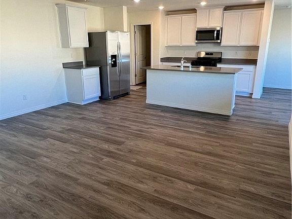 This two-story home features a stylish and functional layout with three bedrooms, two-and-a-half bathrooms, a spacious family room and more. The chef-ready kitchen with its sparkling quartz countertops, oversized wood cabinetry, full suite of energy-efficient appliances and easy access to the dining room, create a functional area for preparing your family’s meals. In addition, this home comes with designer-selected upgrades included at no extra cost such as luxury vinyl-plank flooring, a Wi-Fi-enabled garage door opener, programmable thermostat and more.