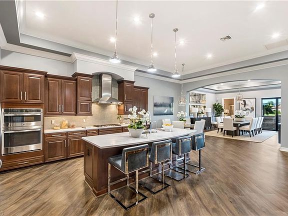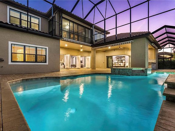 NEW VIRTUAL TOUR VIDEO LINK AVAILABLE UPON REQUEST. Offering a luxury, family residence in the exclusive (only 110 homes), gated community of Mockingbird Crossing on a premium lake front, with feature lot. This home gives your friends and family the ultimate private resort experience in entertaining and has the interior layout for everyone to stay comfortable for extended stays that will give them memories of a lifetime! Walk out your luxurious chef's kitchen through your zero corner door to the upgraded outdoor kitchen with custom granite bar, gas grill/stove, sink and cooler with the lake feature as your back drop! Lanai has all custom electronic roll-out shades and pool cage is all upgraded double gage steel for a "storm resistant" design. Home is pre-engineered for an elevator! This 5 Bed, 5.5 Bath home has it all! 22' ceiling, hardwood, custom 42" cabinets, quartz countertops, walk in wine storage, all commercial grade stainless steel appliances, eat at bar, crown molding, coffered ceilings, reverse osmosis water, large closets, endless storage, extra wide driveway with 4 car attached garage, instant hot tub, landscape lighting... PLEASE ASK AGENT FOR FULL LIST OF UPGRADES.