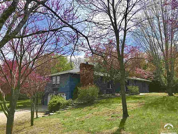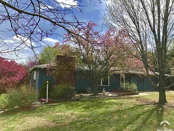 Price reduced to reflect the need for updating and repairs. Great opportunity for Mr/Ms Fixit! Mature cedar forest just minutes south of Lawrence. Quiet, private setting, one-level home on a heavily treed 2.8 acre cul-de-sac site, barely visible from the road, paved roads all the way to town. Spacious, open living areas, windows bring in ample sunlight and views of birds, woods, and wildlife. County appraiser says 2,184 sq.ft. main level, 960 finished in the full basement, for a total of 3,144 sq. ft.
