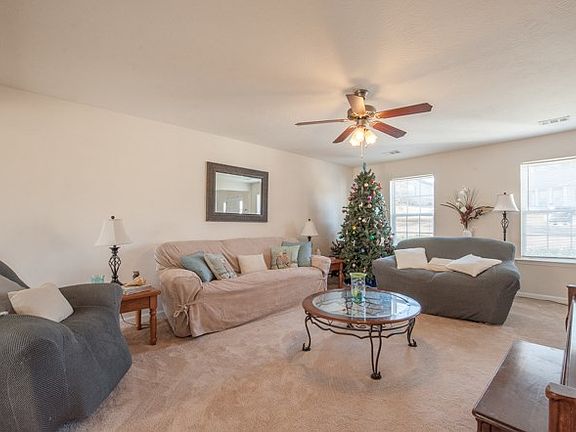 Lovely 4 bdrm 2.5 bath with 1st floor owners suite on 1/2 acre w/fresh paint throughout qualifies for 100% financing! From 2-story foyer, step into living room with ceiling fan and new flooring! Kitchen with built-in micro, range/cooktop, pantry & dishwasher that's 6 mos new! Dining area opens to awesome backyard with gated privacy fence & greenspace behind you! Half bath with lovely pedestal sink! Owner's suite has walk-in closet, garden tub with pretty tile design, dual sink & separate shower! 3 nice guest bdrms, 2 have walk-in closets & 1 with vaulted ceiling! Large upstairs landing makes great bonus space & offers fabulous views! Carpet 4 months new, upgraded stain-resistant with lifetime warranty! 2-car garage, expansive back yard, pergola over patio, fire pit...all great for entertaining!