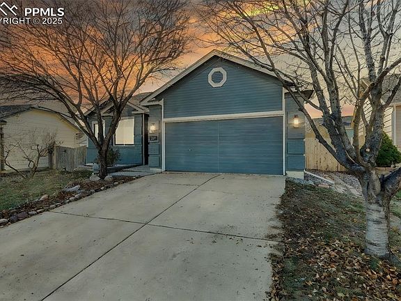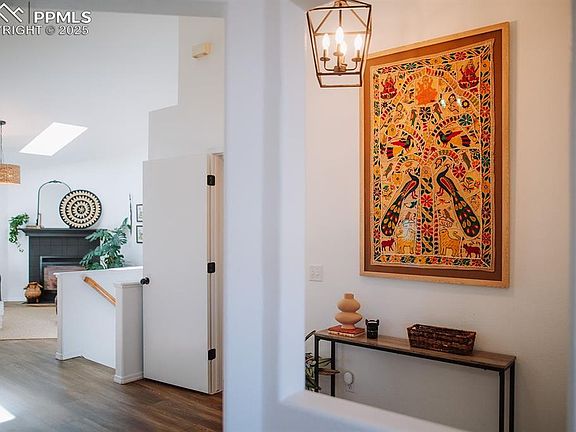 WELCOME HOME to this beautifully updated Classic Homes Williamsburg Ranch; where modern upgrades meet timeless charm. This spacious 4-bedroom, 3-bathroom home offers an open, and sun drenched layout with vaulted ceilings, skylights, & stunning Luxury vinyl Plank flowing through the main level. The bright kitchen features an eat-in dining space & updated appliances with new windows over the sink. Enjoy the convenience of the gorgeous office with french doors, or utilize as a formal dining room for those dinner parties. The living room welcomes you in to rest or entertain with a gorgeous gas fireplace. The sliding glass door beckons you to the private backyard with mature trees, matching storage shed and views of Cheyenne Mountain. Retreat to the spacious primary suite also hosting vaulted ceilings, brand new picture window, an adjoining bath with a garden soaker tub & cedar lined walk in closet. A second bedroom & full bath complete the main level, along with a convenient laundry room & attached 2-car garage. The finished basement provides an expansive family room, two additional bedrooms with walk-in closets, & full bath. Mountaineer enthusiasts will greatly appreciate the custom wall for all your outdoor gear. Meticulously maintained and thoughtfully upgraded, this home includes a 2020 Roof with Impact Resistant Shingles, new furnace with a 10-year install warranty, a full-system humidifier, an air purifier, & smart home features. Upgraded hardware & lighting, fresh interior paint, & new carpet throughout greatly enhance the aesthetic appeal. With easy access to Fort Carson, Highway 115, I-25, shopping, dining, and Cheyenne Mountain Resort, this move-in-ready home offers luxury and convenience in a prime location.