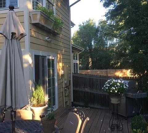 has wide plank, real, light oak solid hardwood floors, custom 5 inch baseboards on main floor. 2 panel arched custom doors throughout. custom kitchen to die for, bridgewood, top of the line custom made white cabinets with matching crown molding at ceiling. high-end granite counter tops, kraus stainless steel sink with matching kitchen faucet. full set of high end frigidaire gallery stainless steel appliances, huge side by side frig, 5 burner gas stove, pot filler, microwave. double oven. free standing moca island in middle of kitchen with lots of drawers. main floor windows are high end milguard lifetime windows. 4.5 inch plantation shutters. living room has cathedral ceiling with skylight. open floor plan with plenty of space. garden of eden type back yard with huge deck, totally private sanctuary type back yard, with lush green grass, surrounded by large trees and bushes, with large fountain that comes with timer. completely finished basement, automatic lights in staircase, ceiling speakers, wet bar, wine rack, refrigerator. custom finished full bath. large master bedroom, with wall safe, custom master bath, custom finished vanity, 2 sinks, oversized tiled shower with clear glass shower door. huge walk-in closet with washer /dryer in closet. custom finished half bath on main floor. custom vanity, toto brand high end toilets. this property is like a show home out of a magazine. a real pleasure to look at this townhouse.