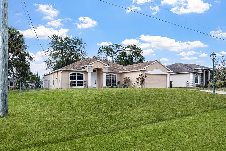 LOVELY 4 BEDROOM 2 BATH 2 CAR GARAGE SINGLE FAMILY HOME IN GREAT LOCATION,MINUTES TO CROSSTOWN PRKWY, I-95, GATLIN BLVD., TRADITION AND ST. LUCIE WEST. THIS HOME FEATURES SPLIT BEDROOM PLAN, TILE LIVING AREA, LAMINATE FLOORING IN BEDROOMS. GRANITE SPACIOUS KITCHEN, NEWER APPLIANCES,FORMAL LIVING AND DINNING ROOM, AND FAMILY ROOM WITH BEAUTIFUL SKYLIGHTS, AND LEADS TO SCREENED INPORCH. NICELY LANDSCAPED AND FENCED IN BACK YARD AND A DRAINAGE CANAL GIVING MORE PRIVACY. BRAND NEW ROOF IN 2023, 2+ YEAR OLD WATER HEATER. AIR CONDITIONER IS STILL UNDER WARRANTY. DON'T MISS OUT ON THISSPACIOUS HOME TO CALL YOUR OWN.