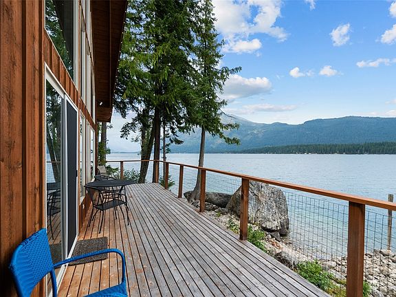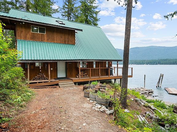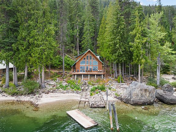Beautiful Lake Wenatchee waterfront home with an absolutely spectacular location! Enjoy panoramic views, a floating dock, and a sandy beach right out your door. Two bedrooms, two baths, vaulted living room ceilings, lots of windows, and a handy utility room immediately inside the front entry. Up at street level, there's a 2-story garage providing great winter parking plus tons of storage underneath. Home also includes all furniture for an easy turn-key move at closing. Shown by Appointment only please.